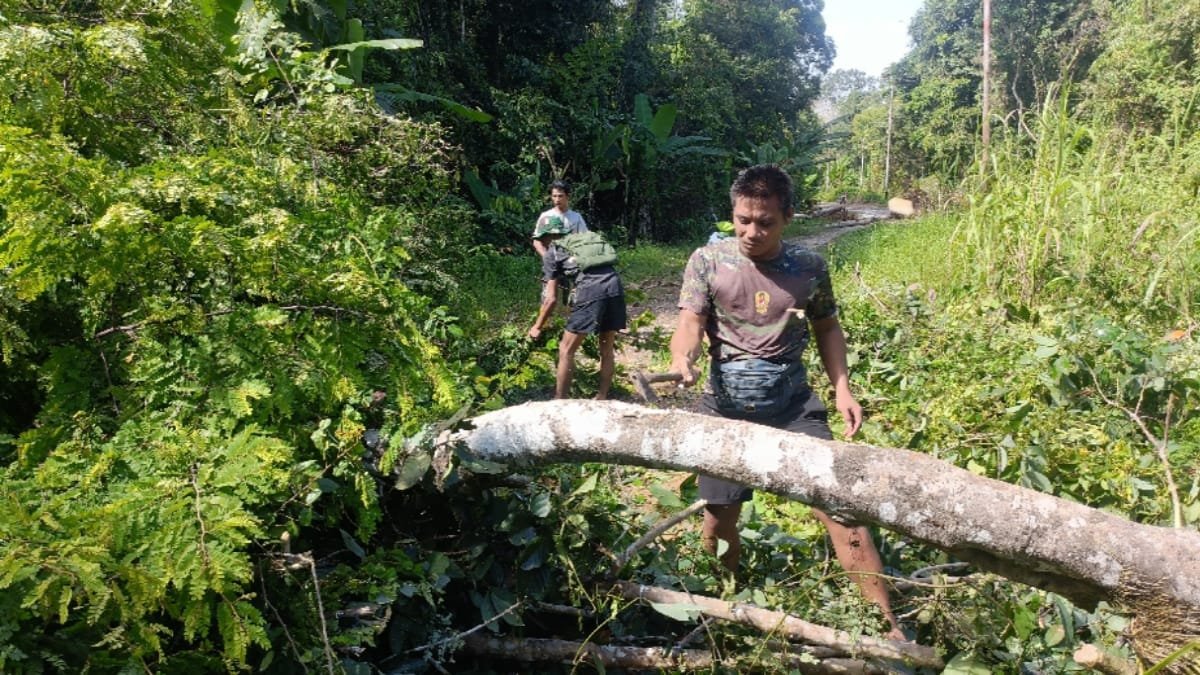 BUNTOK (GeloraNews.co) – Personel Satuan Tugas (Satgas) TNI Manunggal Membangun Desa (TMMD) ke-124 Kodim 1012/Buntok bersama masyarakat melakukan gotong royong membersihkan kiri kanan jalan di Desa Talio, Kecamatan Karau Kuala, Kabupaten Barito Selatan (Barsel), Kalimantan Tengah (Kalteng), Selasa (13/5).