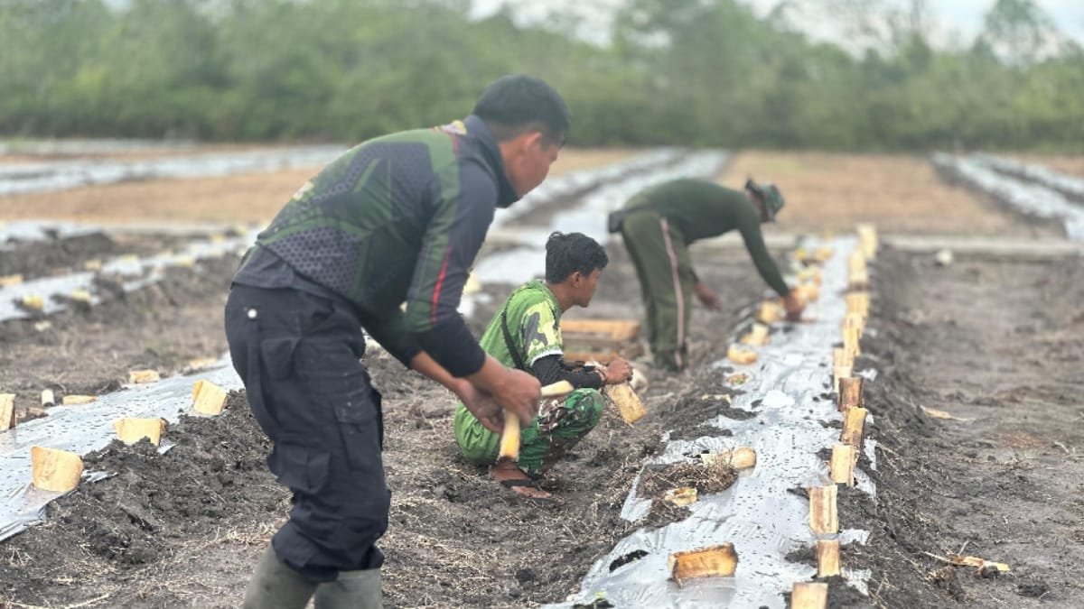 BUNTOK (GeloraNews.co) – Satuan Tugas (Satgas) TNI Manunggal Membangun Desa (TMMD) ke-124 Kodim 1012/Buntok melaksanakan penanaman bibit sayur dalam rangka mendukung program ketahanan pangan nasional.