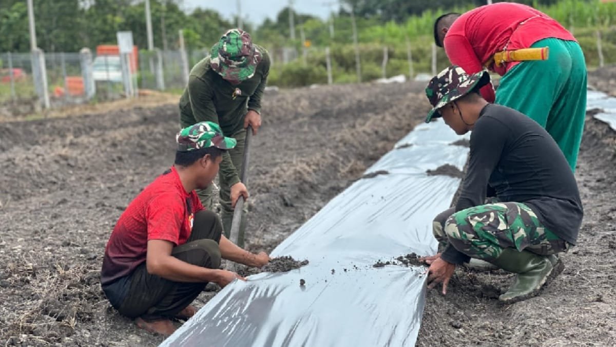 Ia menambahkan, pemasangan mulsa plastik termasuk bagian dari sasaran TMMD Ke-124 yang mendukung peningkatan kesejahteraan masyarakat melalui pertanian.